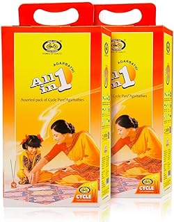 Cycle Pure All-in-One Assorted Sticks: Multi-fragrance incense stick pack offering a variety of aromas for different moods and rituals.