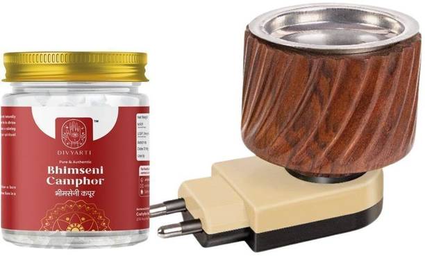 Divyarti Bhimseni Camphor with Wooden Kapoor Kapur Dani – camphor holder set, puja use, aroma diffuser, spiritual ritual, decorative item
