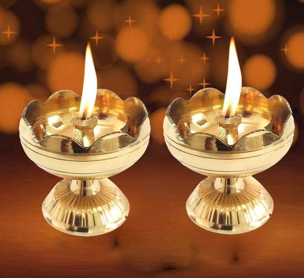 Dsh Brass Table Diya (Pack of 2): A set of two finely crafted brass diyas with a polished finish, designed for stability and long-term use. Ideal for symmetrical decoration and traditional lighting setups.