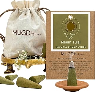 Mugdh Neem Tulsi Mosquito Repellent Dhoop: Herbal dhoop made with neem and tulsi, designed to repel mosquitoes while providing mild fragrance.