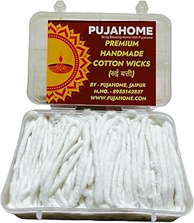 Pujahome Long Cotton Lambi Batti (50g): Pure cotton long wicks in bulk weight pack, suitable for continuous and extended diya lighting.